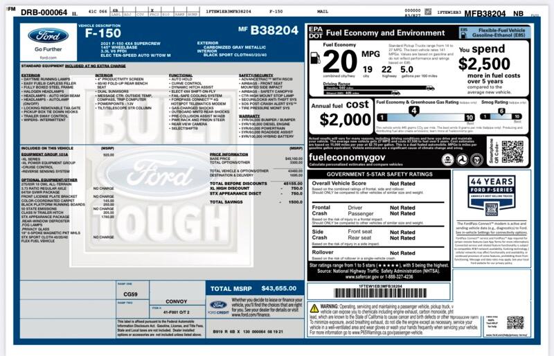 Vehicle Inquiry for 2021 Ford F-150 4WD SuperCrew 145" XL
